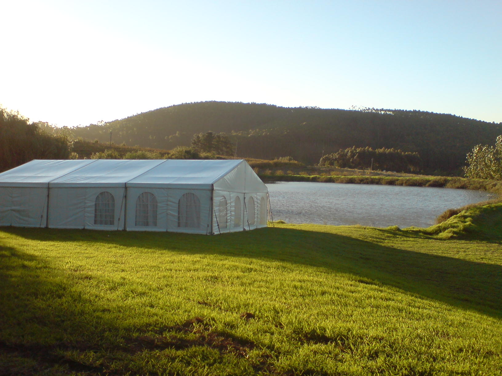 are easily erected on the lawn in front of the dam, offering